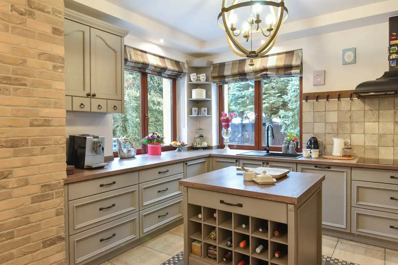 Sama kuchnia w pełni wyposażona w wysokiej klasy sprzęty, zabudowana jasnymi, ponadczasowymi meblami jest wygodna, funkcjonalna i gotowa do urządzenia pysznych posiłków.