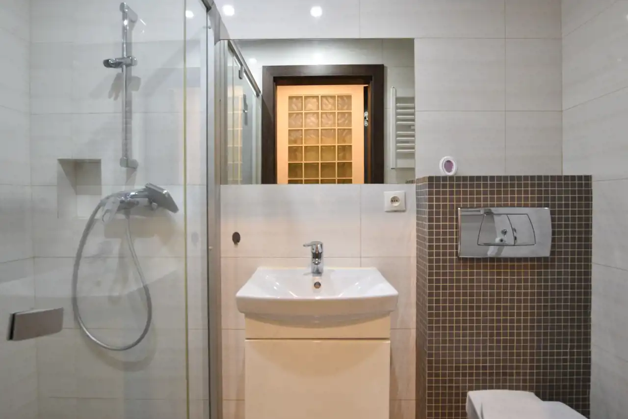 2. Pokój kąpielowy z prysznicem, wanną, bidetem.