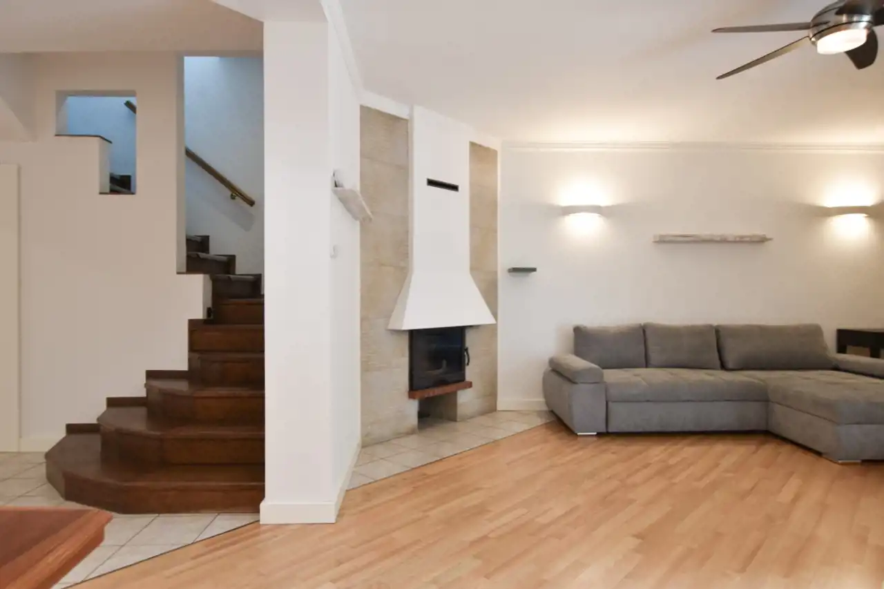 Dom częściowo umeblowany: kuchnia wyposażona w meble kuchenne w zabudowie, sprzęt AGD. Salon z kominkiem i sofą, w pełni wyposażone łazienki.