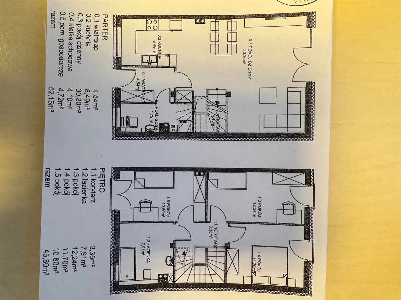Na pierwszym piętrze 3 pokoje ( we wszystkich panele drewniane) oraz przestronna łazienka.