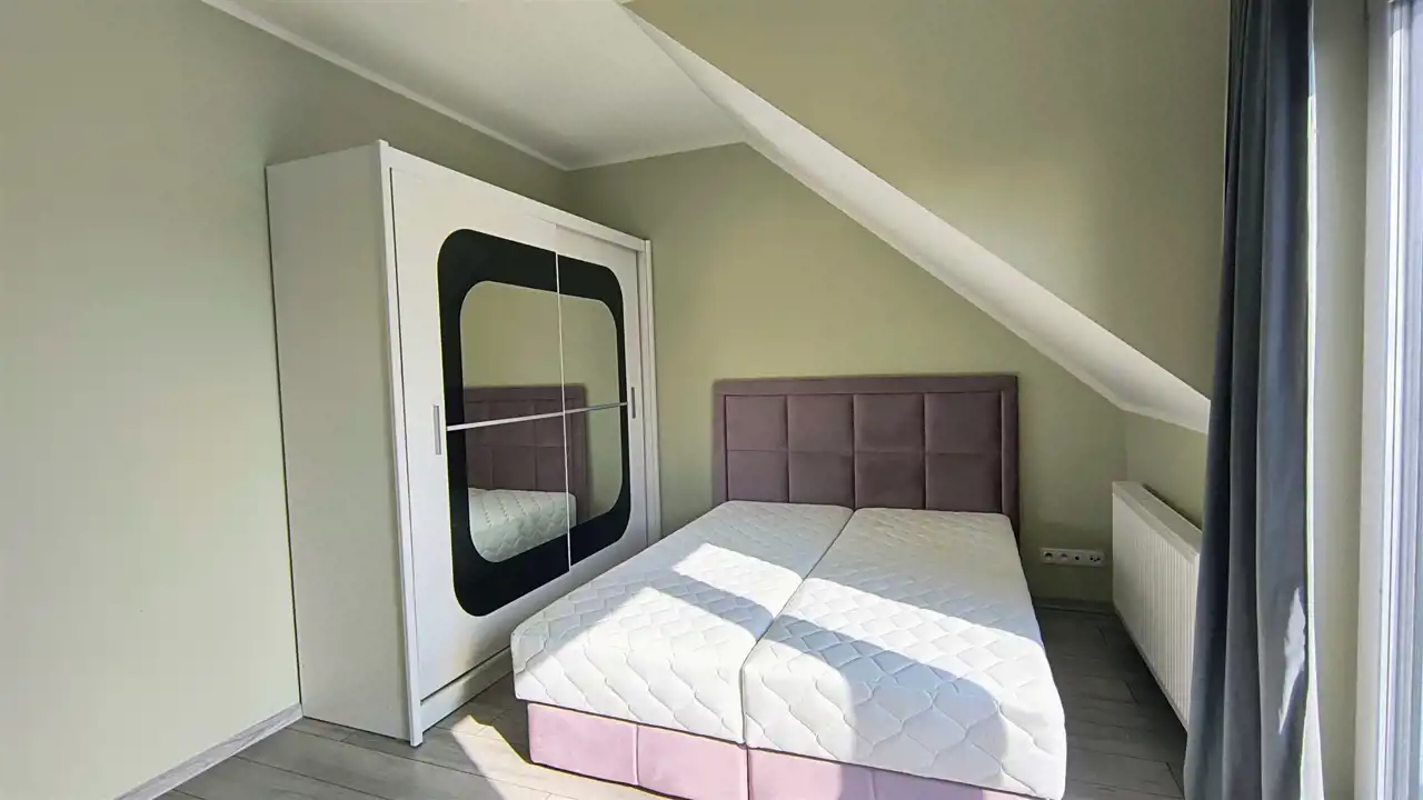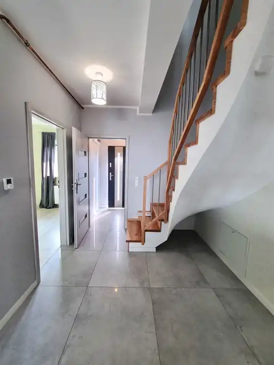 Dom dwu kondygnacyjny z roku 2020 w skład którego wchodzą 3 niezależne pokoje, duży salon z aneksem kuchennym i wyjściem na taras.