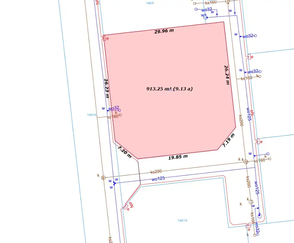 Optymalna powierzchnia prezentowanej działki to 911 m² z przyłączami na działce !