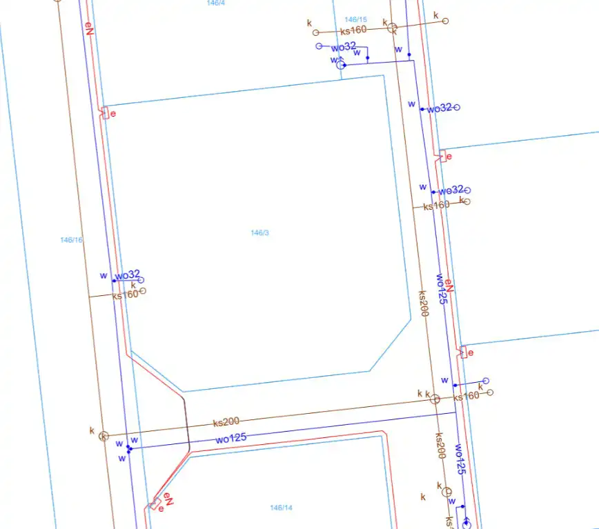 - Media Woda: na działce; Kanalizacja: na działce; Prąd: na działce; Gaz: w drodze dojazdowej