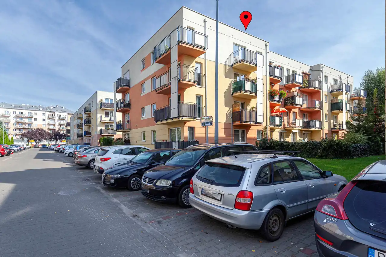 W pobliżu budynku znajdują się liczne miejsca parkingowe.