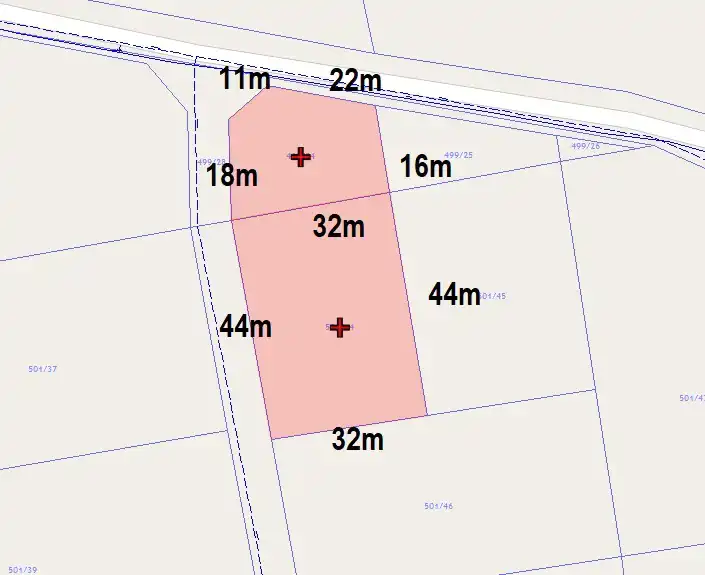 Działka składa się z dwóch niezależnych działek o powierzchni 1367m² oraz 635m². Działki sprzedawane tylko łącznie ze względu na zapis w Planie Zagospodarowania przestrzennego o minimalnej powierzchni działki pod zabudowę określoną na minimum 1500m.