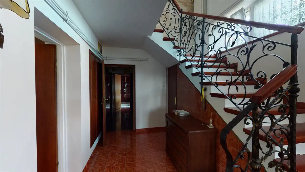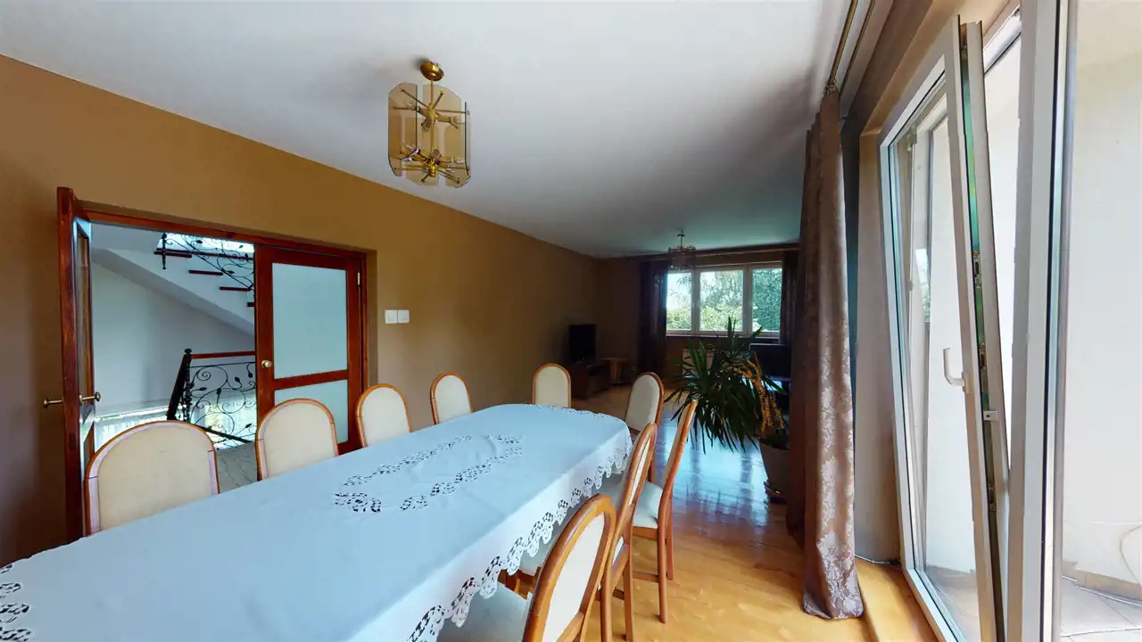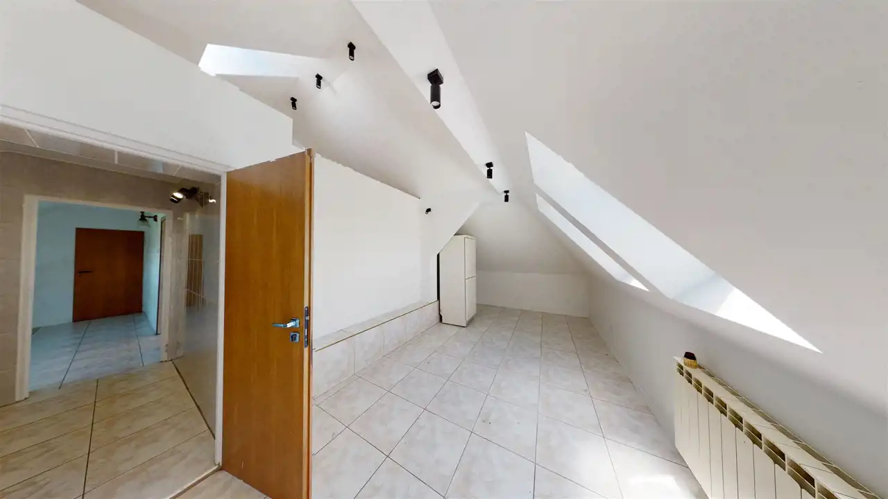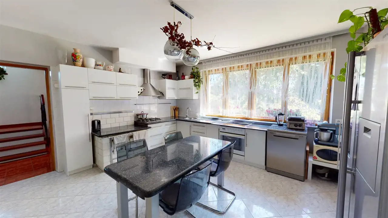 Residential building after general renovation, carefully finished, ready to move in. Heating from a gas combi oven and a fireplace with a water jacket. Household sewage treatment plant (municipal sewage system to be connected in 2023), water from a deep well. A house made of brick and hollow brick, insulated with polystyrene, the roof replaced, new installations, floors, windows (PVC), doors, etc. The house has 3 independent floors, each with a bathroom and a kitchen. Also successfully for a multigenerational family.