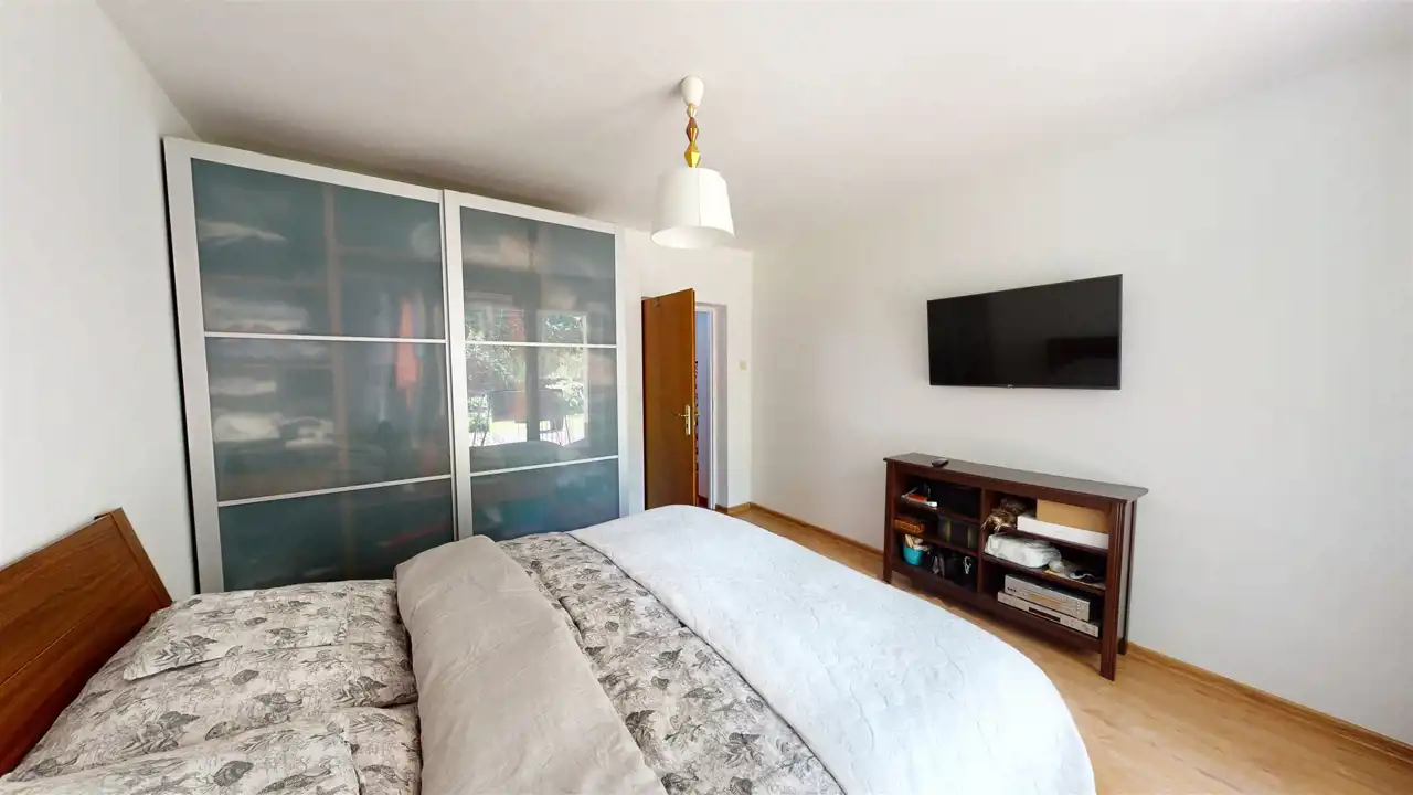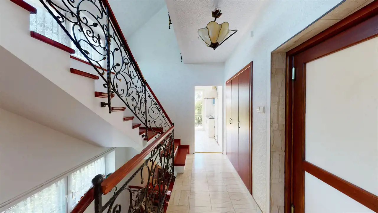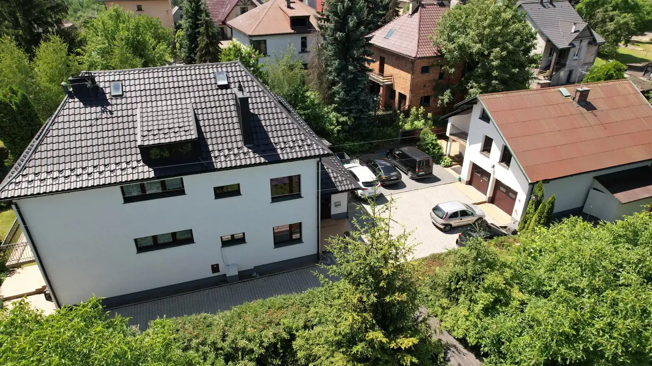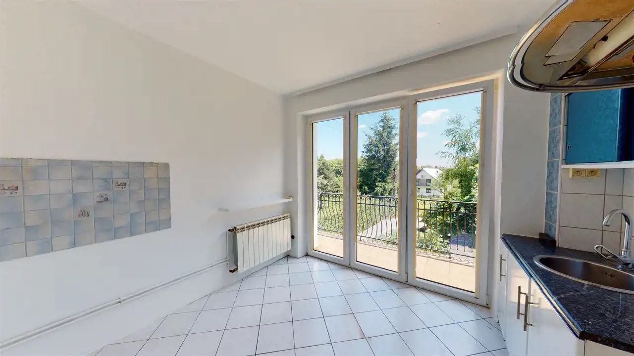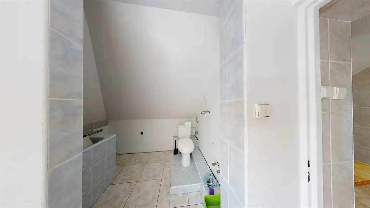 Residential building after general renovation, carefully finished, ready to move in. Heating from a gas combi oven and a fireplace with a water jacket. Household sewage treatment plant (municipal sewage system to be connected in 2023), water from a deep well. A house made of brick and hollow brick, insulated with polystyrene, the roof replaced, new installations, floors, windows (PVC), doors, etc. The house has 3 independent floors, each with a bathroom and a kitchen. Also successfully for a multigenerational family.
