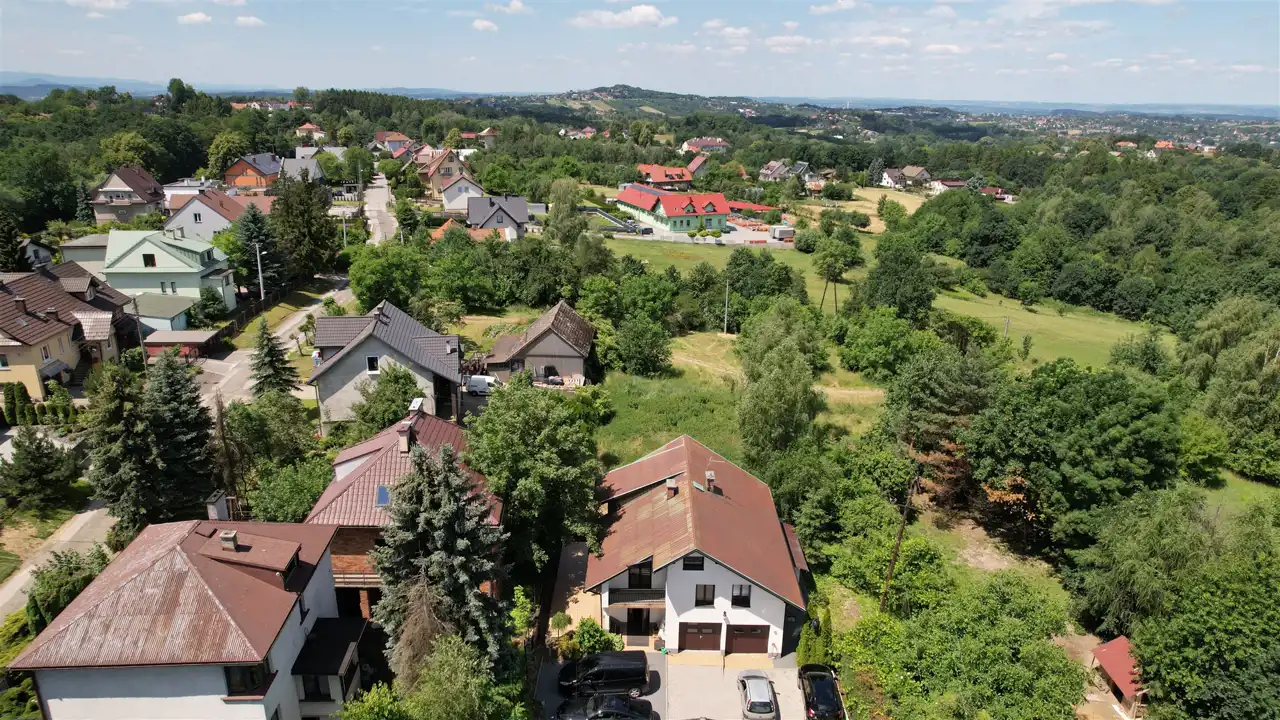 Property in Świątniki Górne, consisting of two buildings, a detached, residential and a separate outbuilding, on a plot of the area 1100 m2.A three-storey residential house from 1982 with a total area of approx. 258 m2, and a separate outbuilding, two-storey built in 1991, with an area of approx. approx. 173 m2. The buildings are assigned separate numbers.