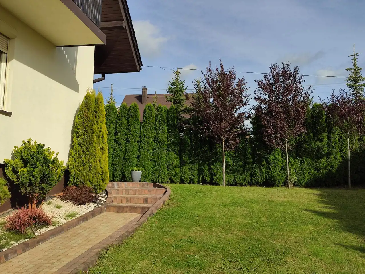 - Działka Zagospodarowana, lekko nachylona, trapez
