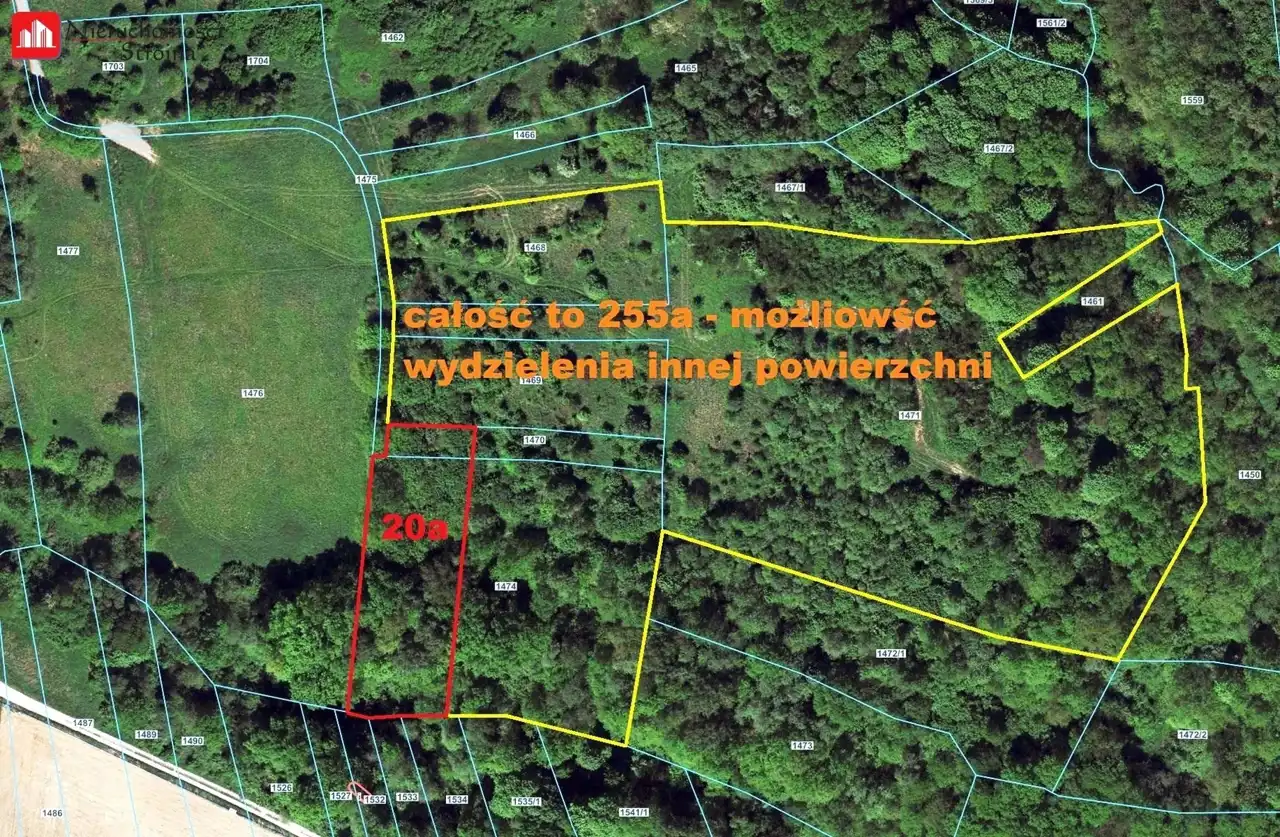 Działka o pow. 20a z czego ok 8a jest budowlane, 12a leśne.