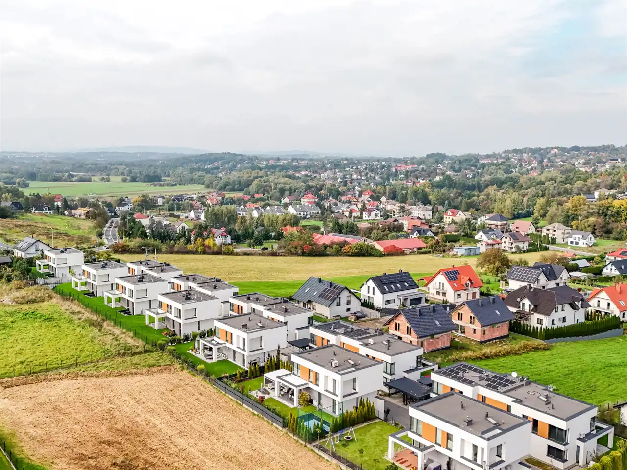 Domy Odkrywców to kameralne osiedle klasy premium, położone w Wrząsowicach – tuż za południową granicą Krakowa. To miejsce dla osób, które chcą żyć w ciszy i zieleni, a jednocześnie mieć miasto w zasięgu kilkunastu minut.
