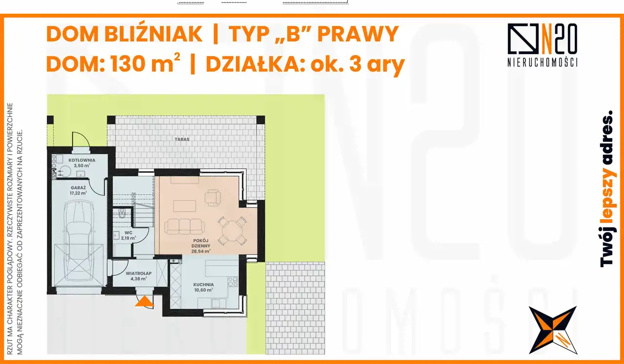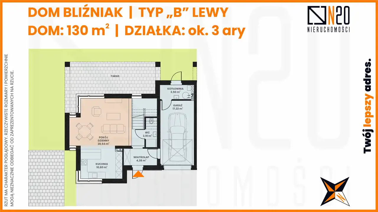 N20 Nieruchomości oferuje do sprzedaży nowy, 2-poziomowy dom z garażem w zabudowie bliźniaczej wraz z prywatnym ogrodem, o powierzchni użytkowej 127 m², zlokalizowany tuż przy południowej granicy Krakowa-Swoszowic.
