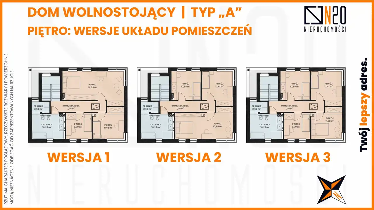 - możliwość aranżacji 3 lub 4 sypialni (kilka wariantów układu)
