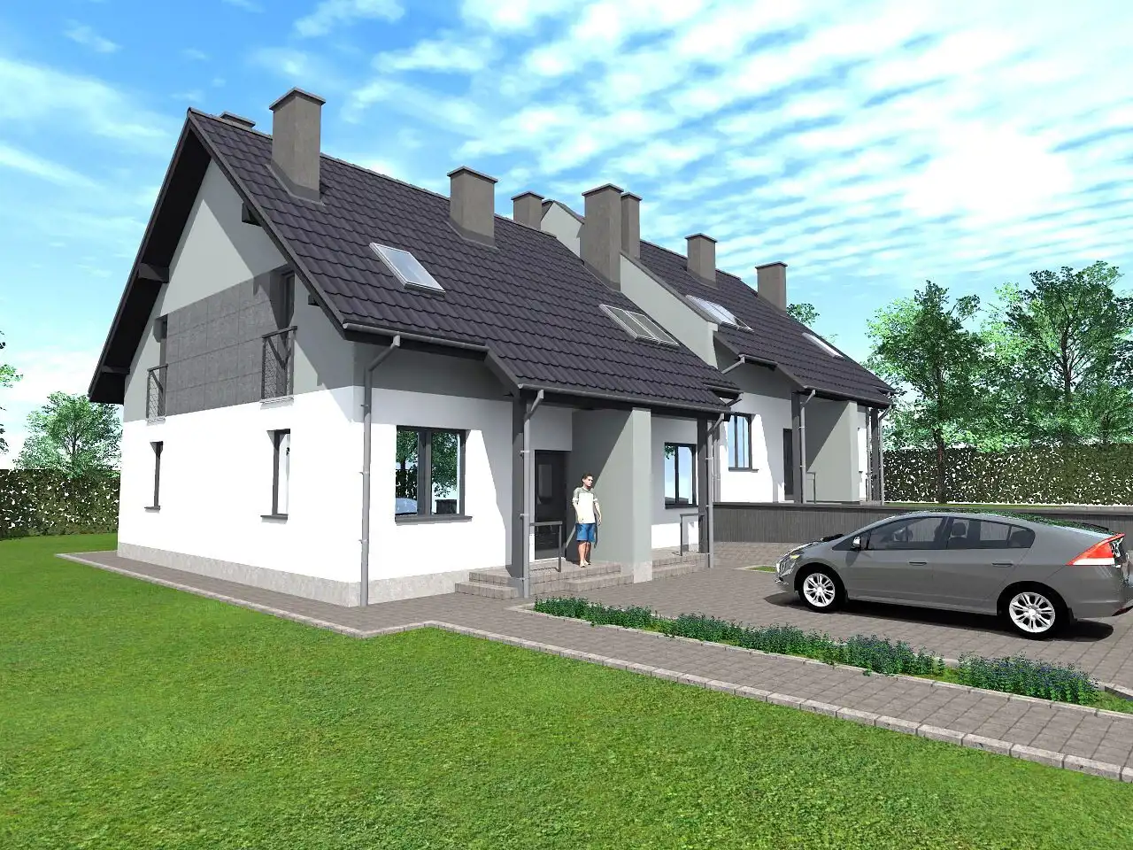 Oferowany lokal mieszkalny to dwupoziomowy segment o układzie funkcjonalnym jak w zabudowie szeregowej (parter + poddasze), o powierzchni użytkowej ~75 m2 (powierzchnia podłóg ok. 80 m2) z przynależną do tego segmentu częścią działką o powierzchni ~189m2 (1,89 ara). Dodatkowo segment będzie posiadał poddasze (strych) o pow. netto ok. 20 m2 (nie wliczony w cenę).