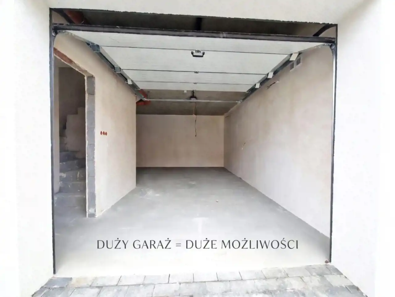 Garaż o powierzchni ponad 30 m², idealny do adaptacji na dodatkowy pokój, biuro domowe czy siłownię.