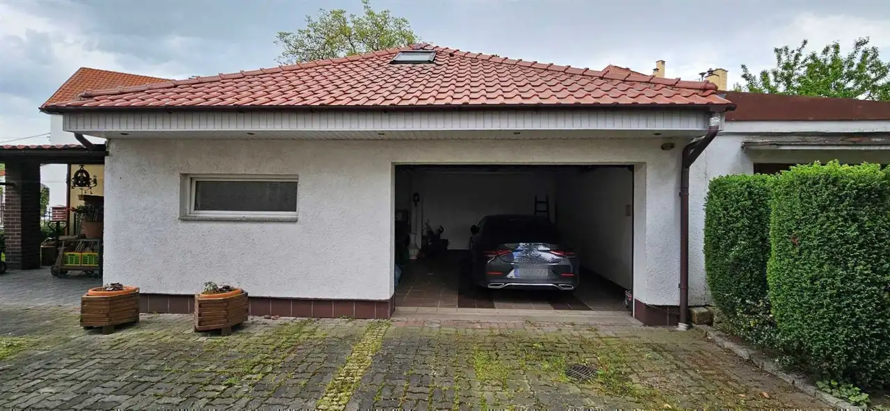 Dodatkowo na działce garaż dwustanowiskowy o powierzchni ok. 58 m2 z przyległą wiatą i bramami wjazdowymi sterowanymi automatycznie