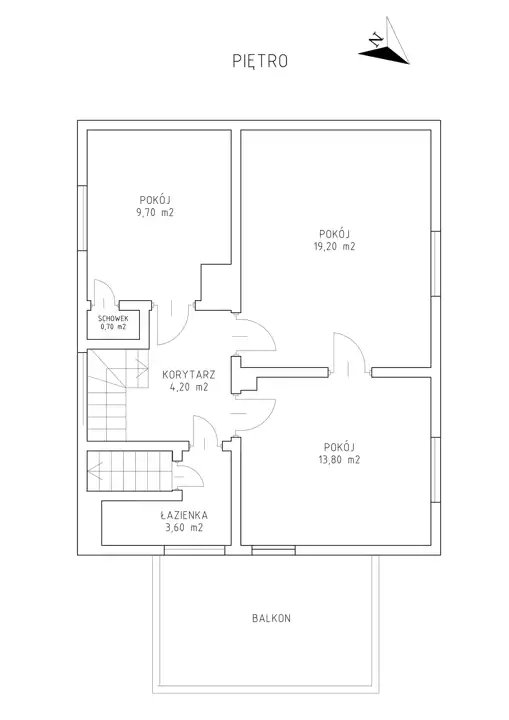 - PIĘTRO (HŚR.= 270 cm): 3 pokoje (19 m2; 14 m2; 10,5 m2, ), łazienka (3,5 m2) i komunikacja;