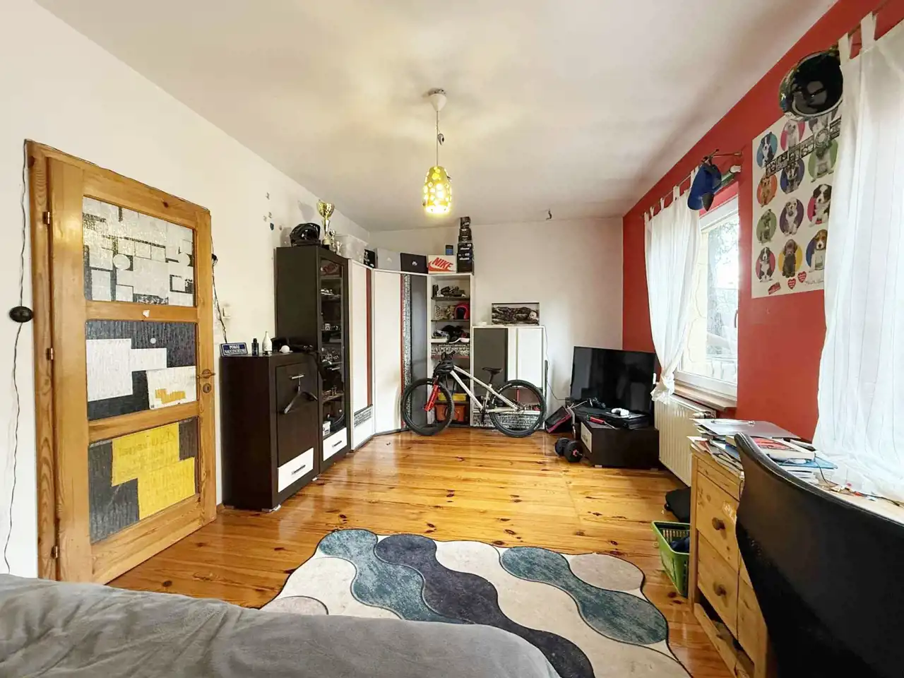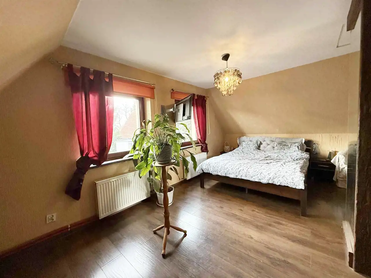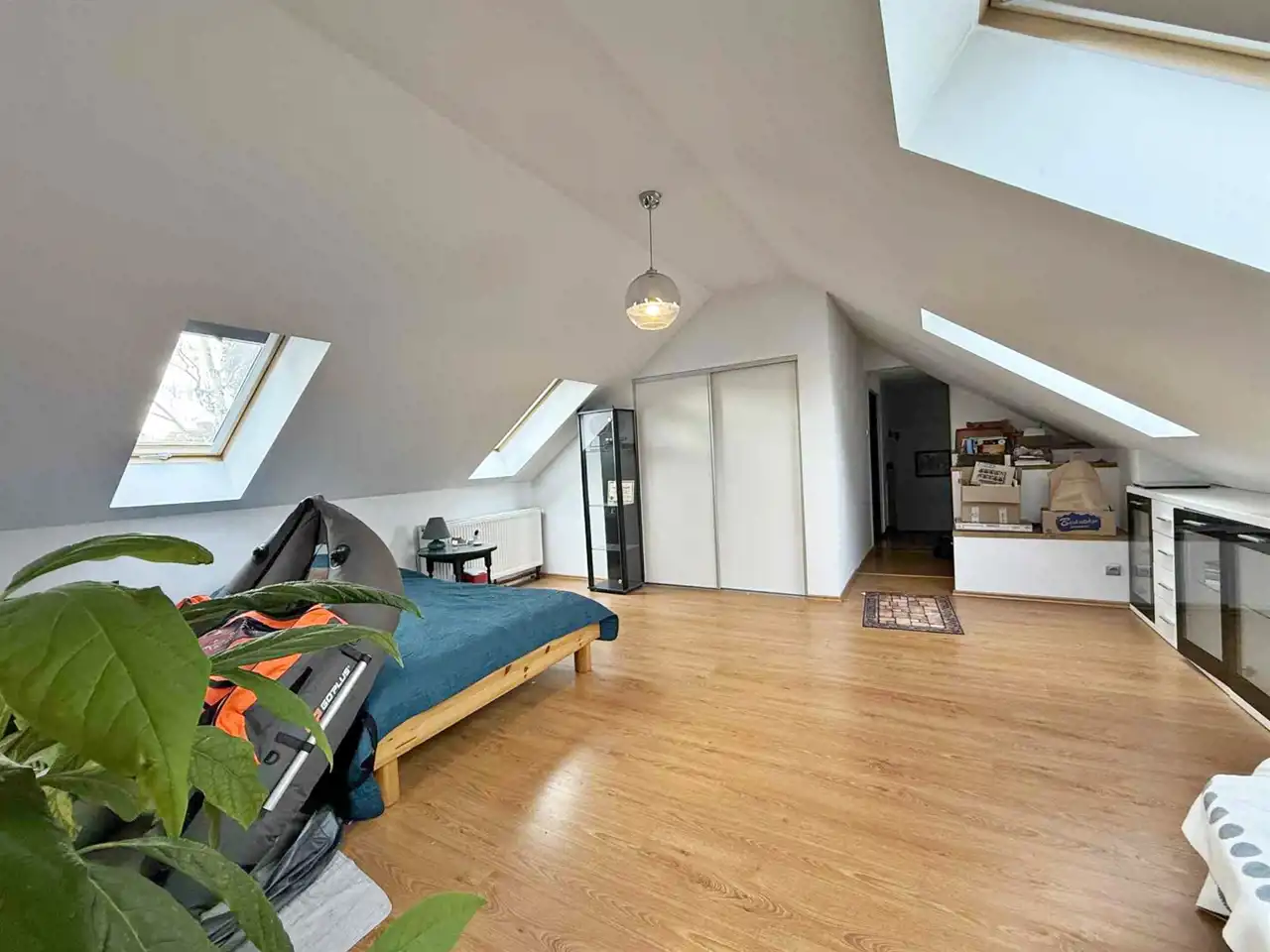 I piętro: Na górę prowadzą oryginalne schody, z piękną drewnianą barierą. Znajdziemy tu dwie duże sypialnie, z zagospodarowanymi skosami, w których zainstalowano meble na wymiar, a także pojemną garderobą, oraz przestronny, otwarty pokój z oknami typu velux i zainstalowanymi w nich zaciemniającymi roletami i wnęką balkonową.