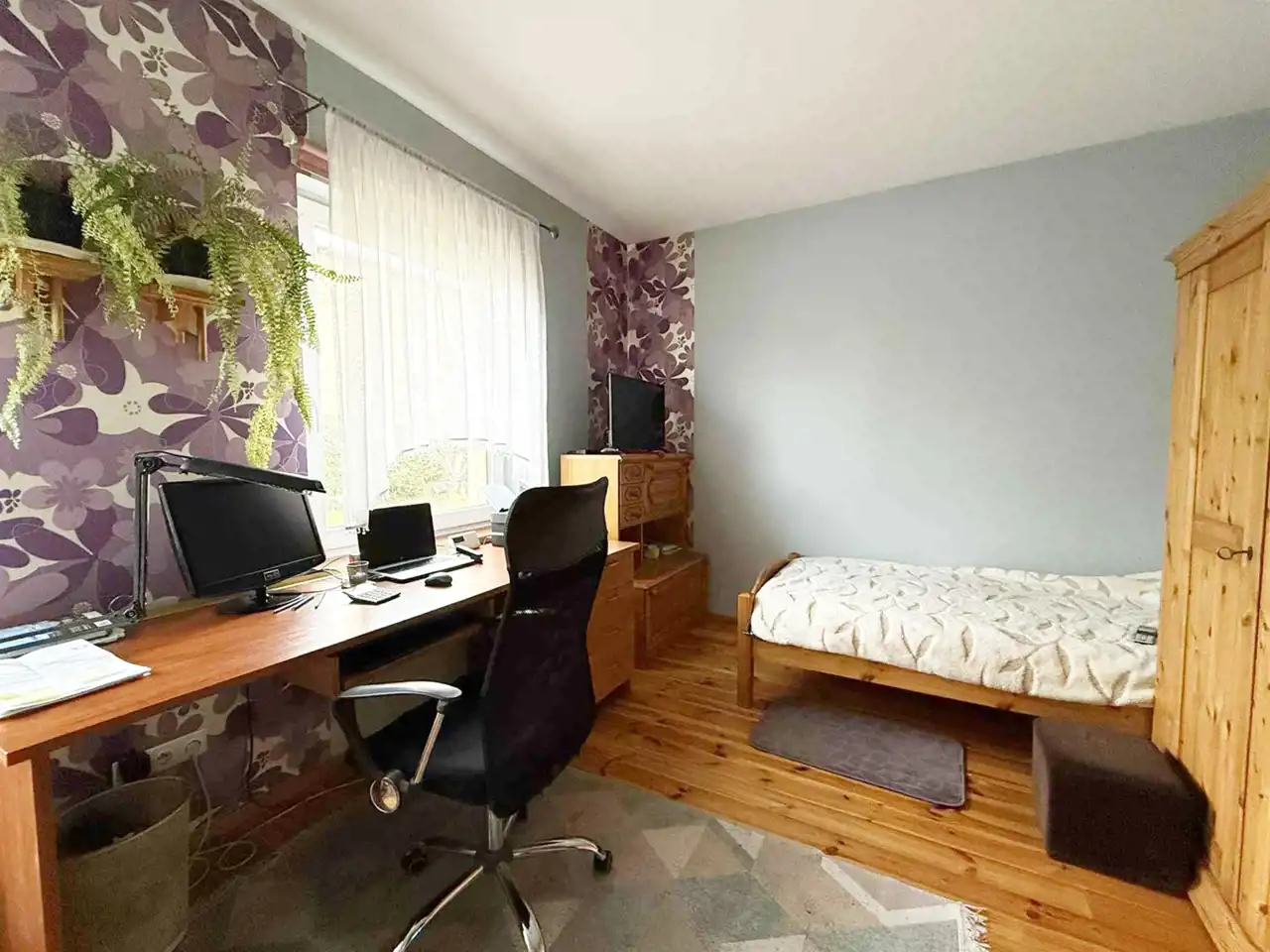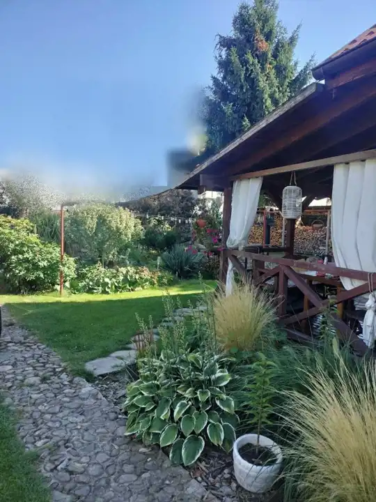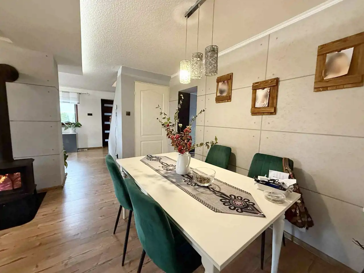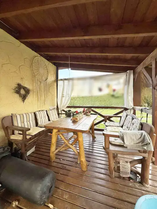 Stan: Dom w stanie bardzo dobrym, ciepły, docieplony, okna PCV plus nowoczesne, drewniane, parapety kamienne, instalacje wedle wszelkich norm- CO piec dwufunkcyjny gazowy , instalacja w miedzi, dodatkowo w salonie klimatyczny kominek na deszczowe i zimowe wieczory. Duży zadaszony ganek i taras z tyłu budynku, zagospodarowana działka, przytulny ogród z licznymi ozdobnymi nasadzeniami, drzewami owocowymi, miejscem na grilla, drewutnią wypełnioną drewnem do kominka. Obok przydomowy warzywniak. Podjazd wyłożony mozaiką. Dom otoczony ozdobnym ogrodzeniem.
