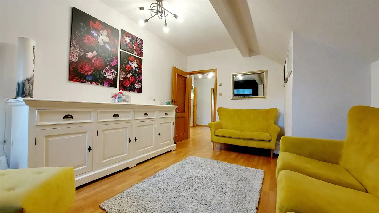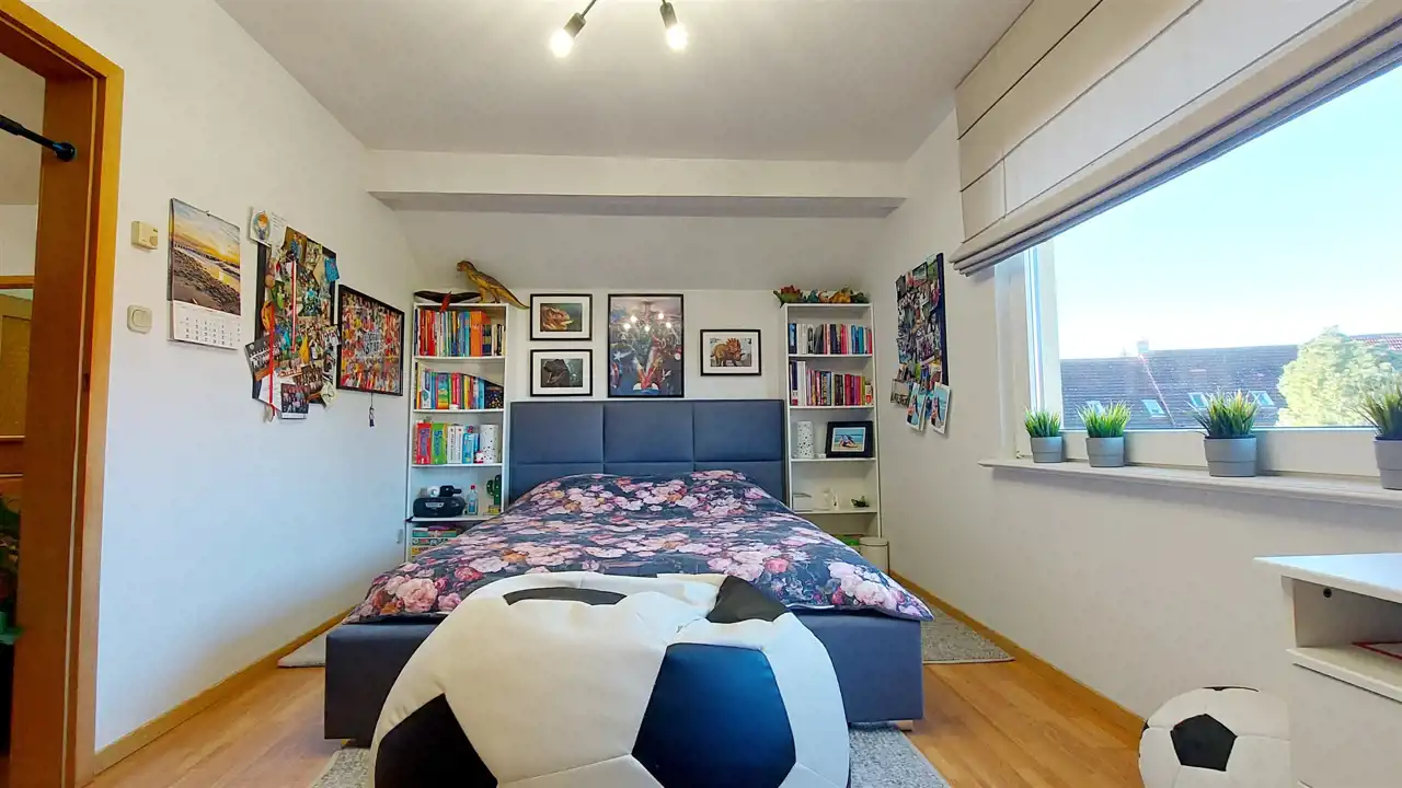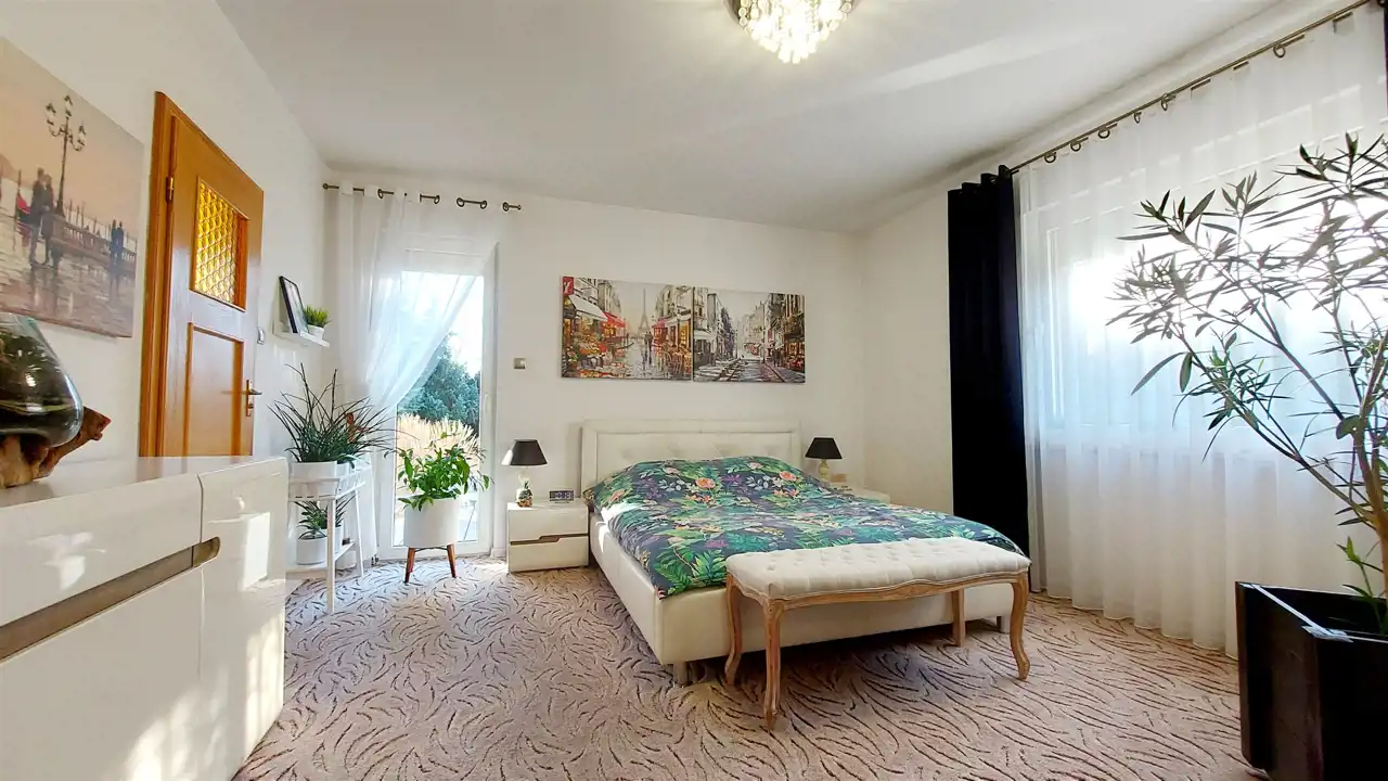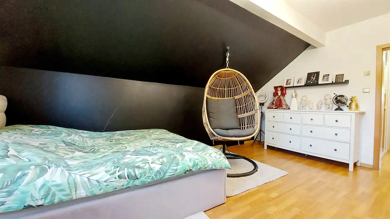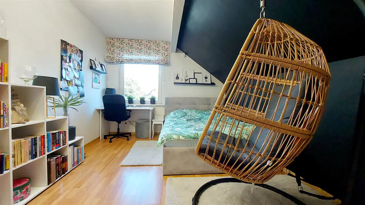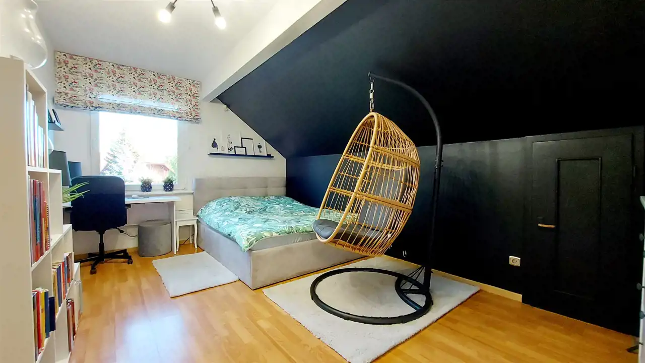 - Trzy komfortowe sypialnie, w tym jedna z dostępem do poddasza użytkowego
