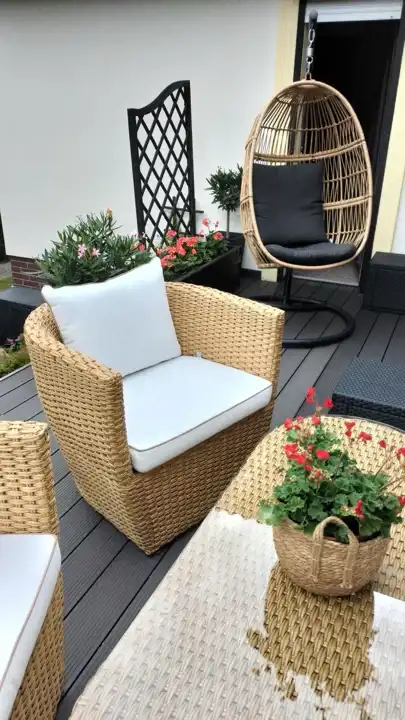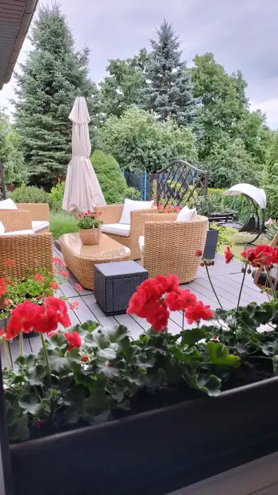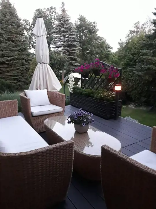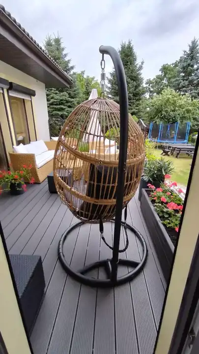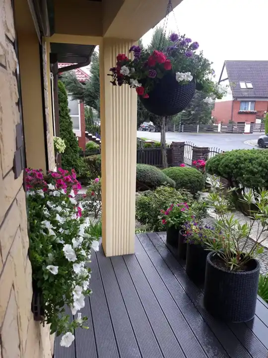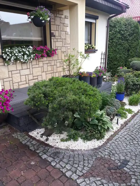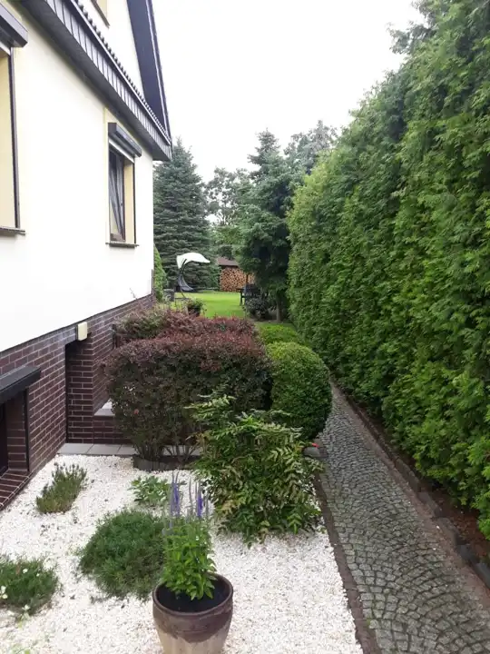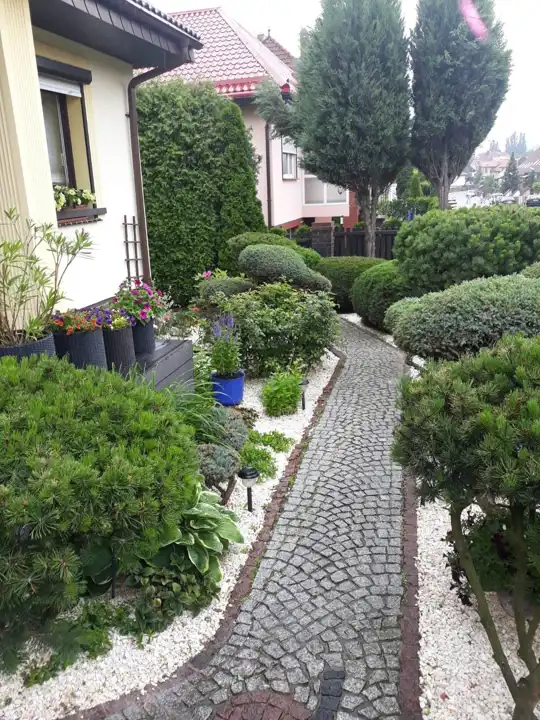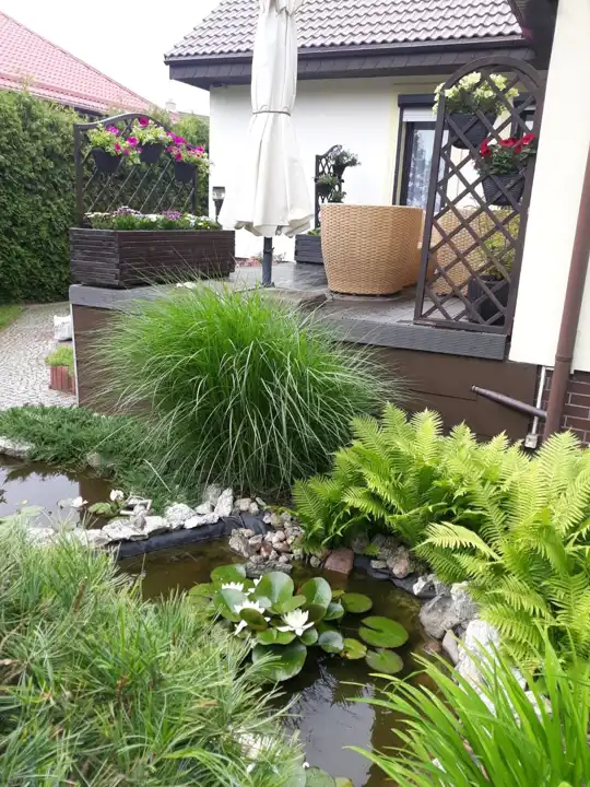 - Przepięknie zagospodarowany ogród z licznymi nasadzeniami, tworzący idealną przestrzeń do relaksu