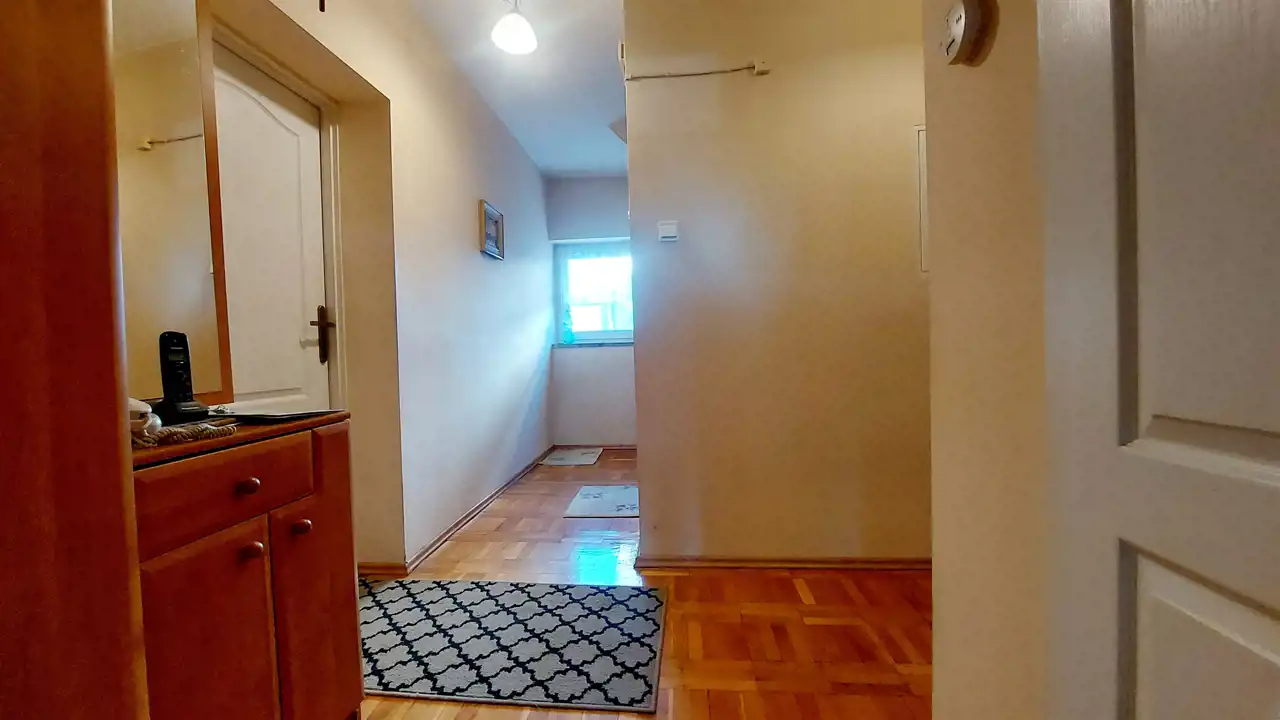 - Podłogi: parkiety i panele, w łazienkach płytki.