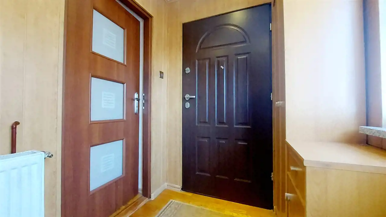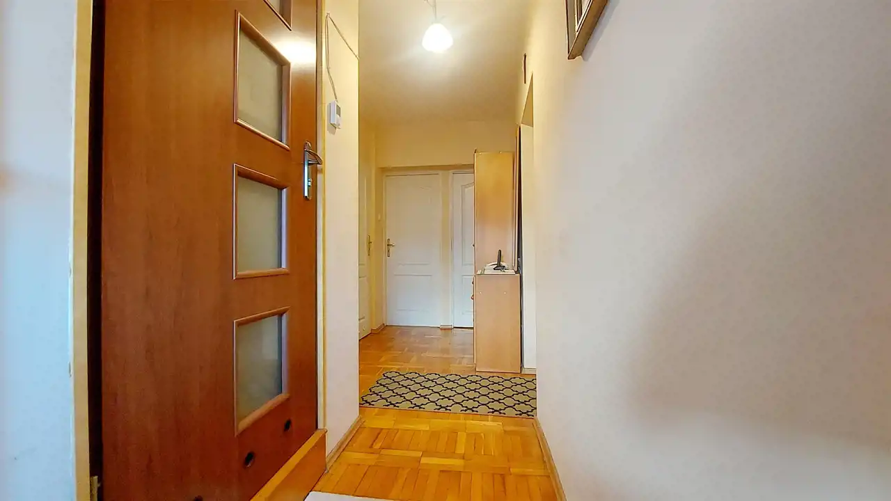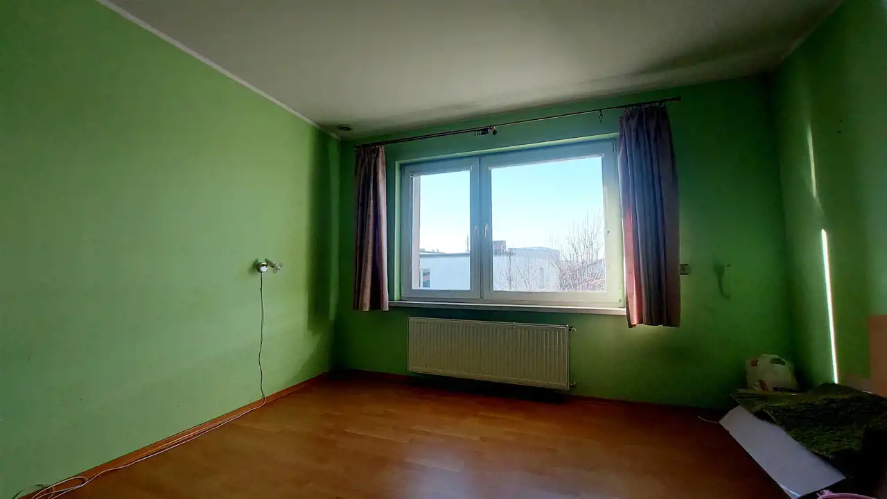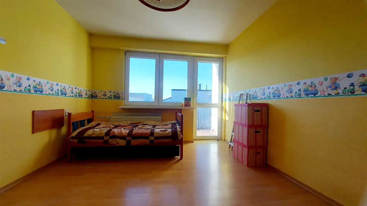 - Trzy duże pokoje (jeden z wyjściem na balkon).