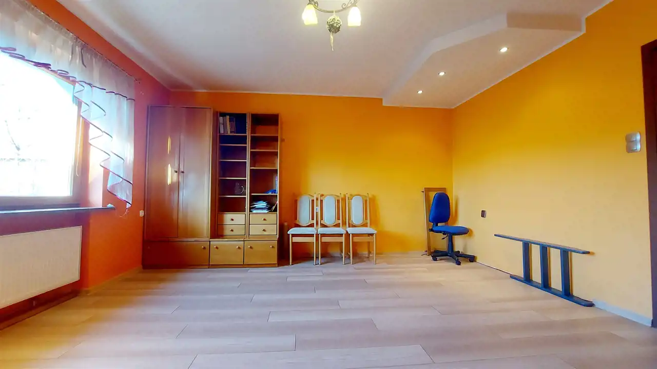 Ta przestronna nieruchomość o funkcjonalnym układzie pomieszczeń jest idealnym wyborem zarówno dla dużej rodziny, jak i dwóch niezależnych gospodarstw domowych. Dom jest w pełni funkcjonalny i gotowy do zamieszkania, jednak częściowo wymaga modernizacji, co daje przyszłym właścicielom możliwość dostosowania wnętrz do swoich indywidualnych potrzeb. W budynku są dwa, osobne garaże. Na działce znajduje się zagospodarowany ogród z drzewami owocowymi. Lokalizacja domu jest bardzo wygodna — niedaleko centrum, przy spokojnej bocznej uliczce, z łatwym dostępem do przystanku autobusowego, szkoły, przedszkola i kościoła parafialnego. W odległości 400 m znajduje się sklep Intermarché, a 500 m — Kaufland. Dom usytuowany jest również blisko drogi wylotowej w kierunku Wałbrzycha, co zapewnia sprawną komunikację.