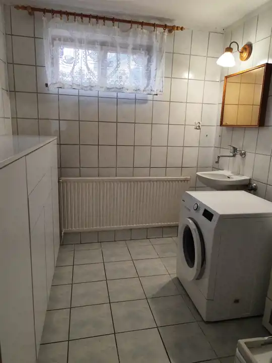 W użytkowym podpiwniczeniu znajduje się wiele pomieszczeń, które można przystosować do zrobienia niezależnego mieszkania z osobnym wejściem. Mamy tutaj sporych rozmiarów salon z wyjściem do ogrodu, dużą pralnię ze wszystkimi przyłączami, wanną, zainstalowany odpływ w podłodze, osobno WC. W jednym z pomieszczeń zamontowany nowy piec dwufunkcyjny CO. Pomieszczenia jasne, ciepłe i suche. Duża brama wjazdowa do garażu, w którym można przechowywać dwa auta. Garaż z kanałem. W oknach rolety antywłamaniowe.