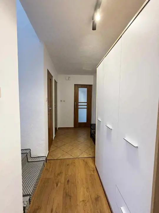 Wyposażenie: kuchnia- meble kuchenne, lodówka, płyta, piekarnik, zmywarka, szafa w zabudowie w łazience. Pokoje są puste.