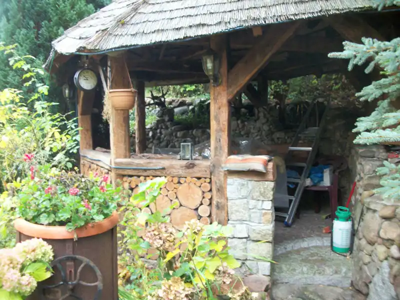 Przed domem znajduje się piękny ogród, z miejscem na grilla.