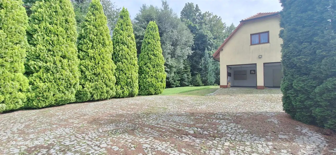 POSIADŁOŚĆ OGRODZONA, BRAMA WJAZDOWA NA PILOTA, OPRÓCZ GARAŻU LICZNE MIEJSCA POSTOJOWE.