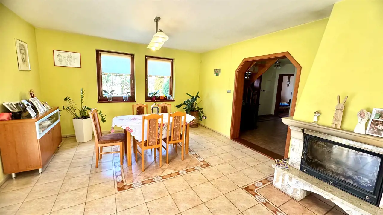 Ogrzewanie piecem na pellet i drewno, dodatkowo w salonie wybudowany jest kominek z marmuru i piaskowca z płaszczem wodnym rozprowadzonym na cały dom.