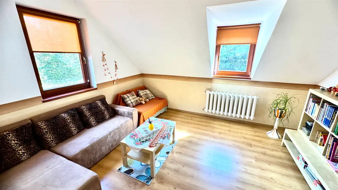 Powierzchnia całkowita domu to 208,52m2, w tym pomieszczenia przynależne - dwa garaże oraz kotłownia o łącznej powierzchni 56,54m2 oraz dom dwukondygnacyjny o powierzchni 151,98m2.