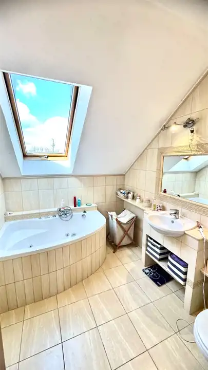 Dom zamieszkany od 2006 roku, po zakończonej jego budowie. Wybudowany z suporexu; nad dachu dachówka Braas betonowa; ocieplenie 10 cm styropian. Okna piękne, drewniane. Na podłodze na parterze ozdobna terakota - ogrzewanie podłogowe ( na piętrze kaloryfery ).