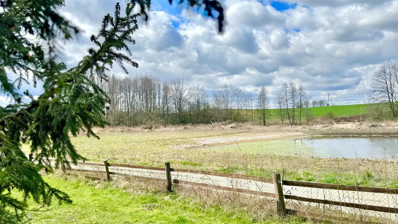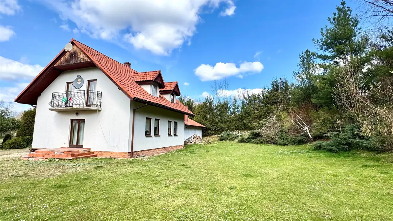 W zacisznym miejscu położony dom wolnostojący na działce 23 ary z widokiem na staw i wśród zieleni.