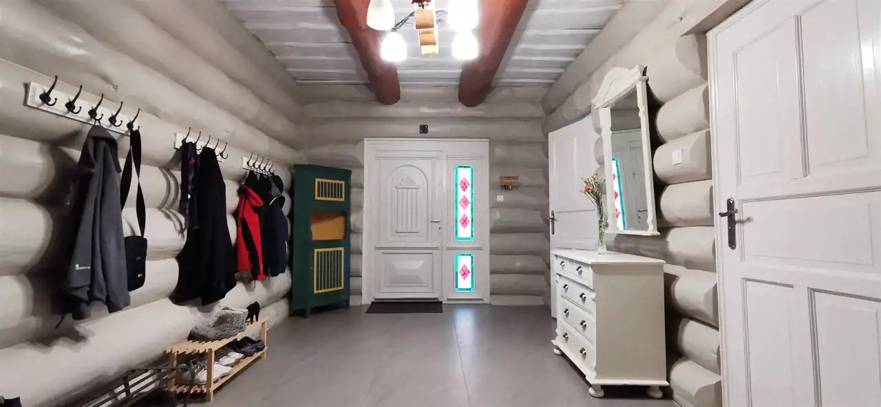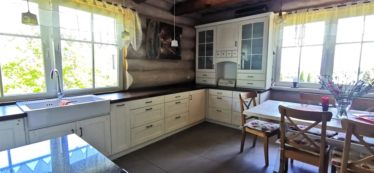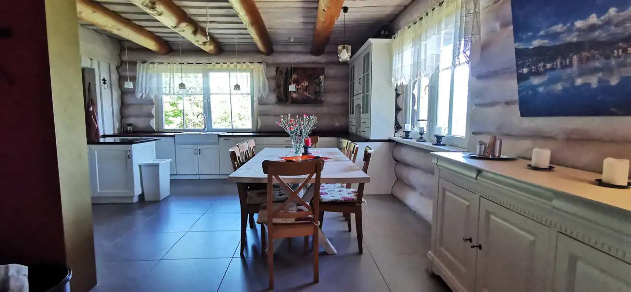 Architektura z duszą – dom zbudowany z drewnianych bali, emanujący ciepłem i wyjątkowym klimatem. Każdy detal wykonany z dbałością o estetykę i jakość.
