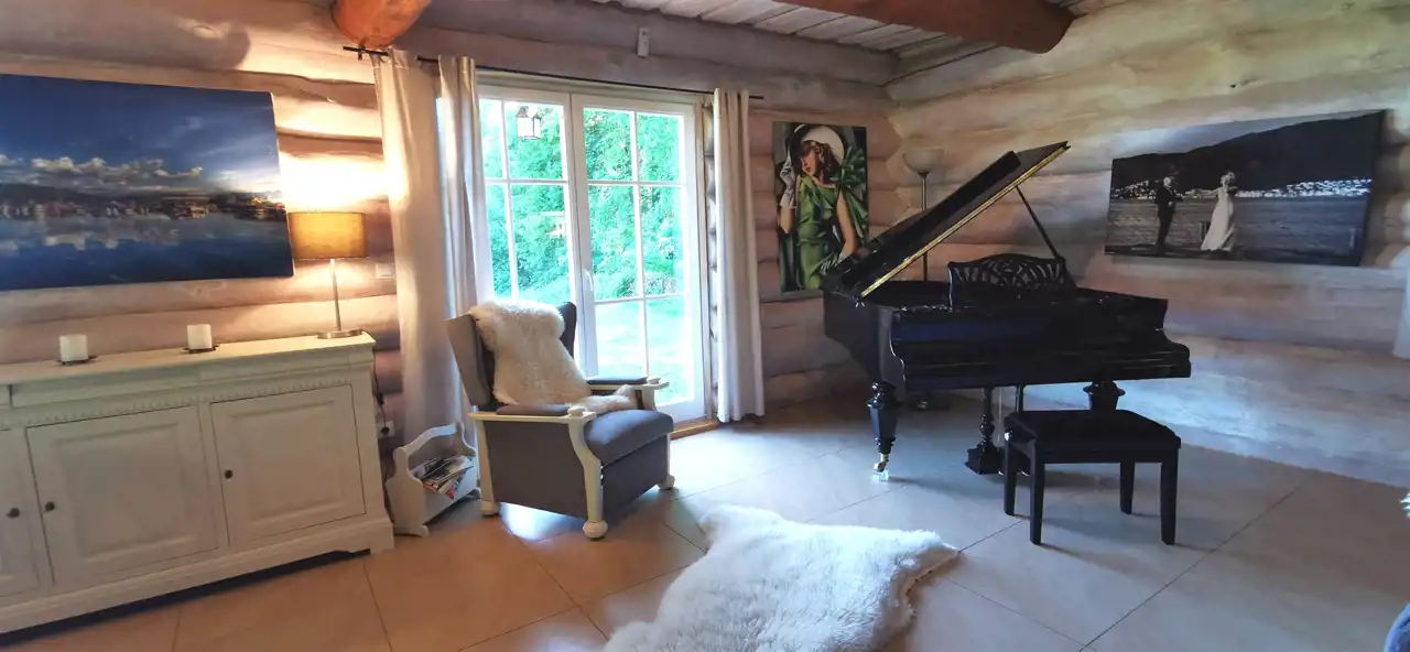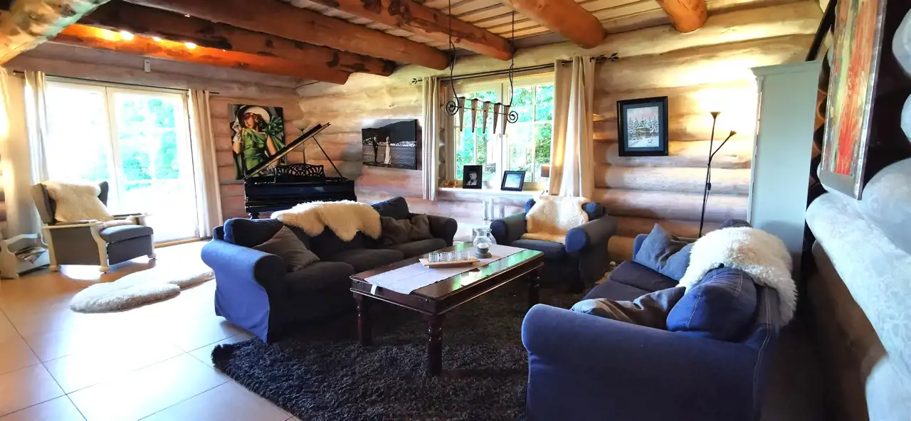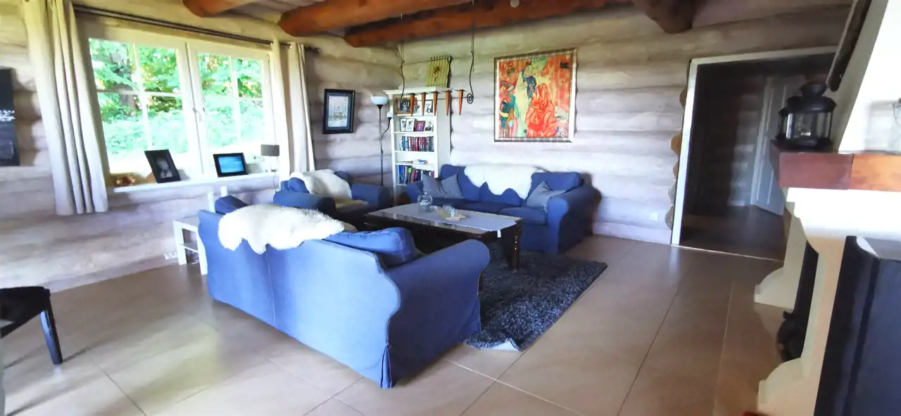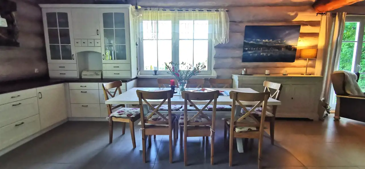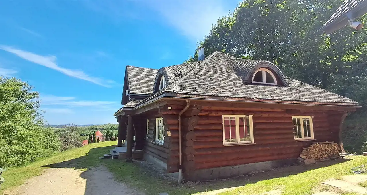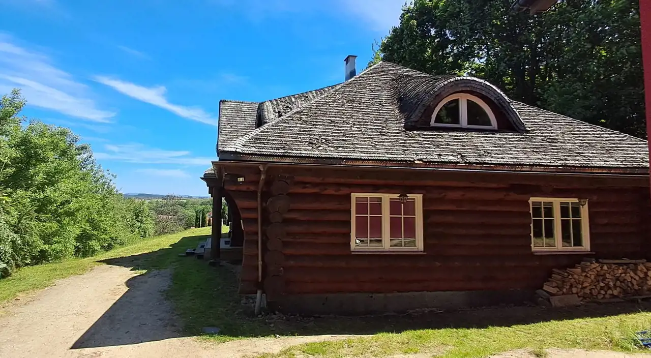 Architektura z duszą – dom zbudowany z drewnianych bali, emanujący ciepłem i wyjątkowym klimatem. Każdy detal wykonany z dbałością o estetykę i jakość.