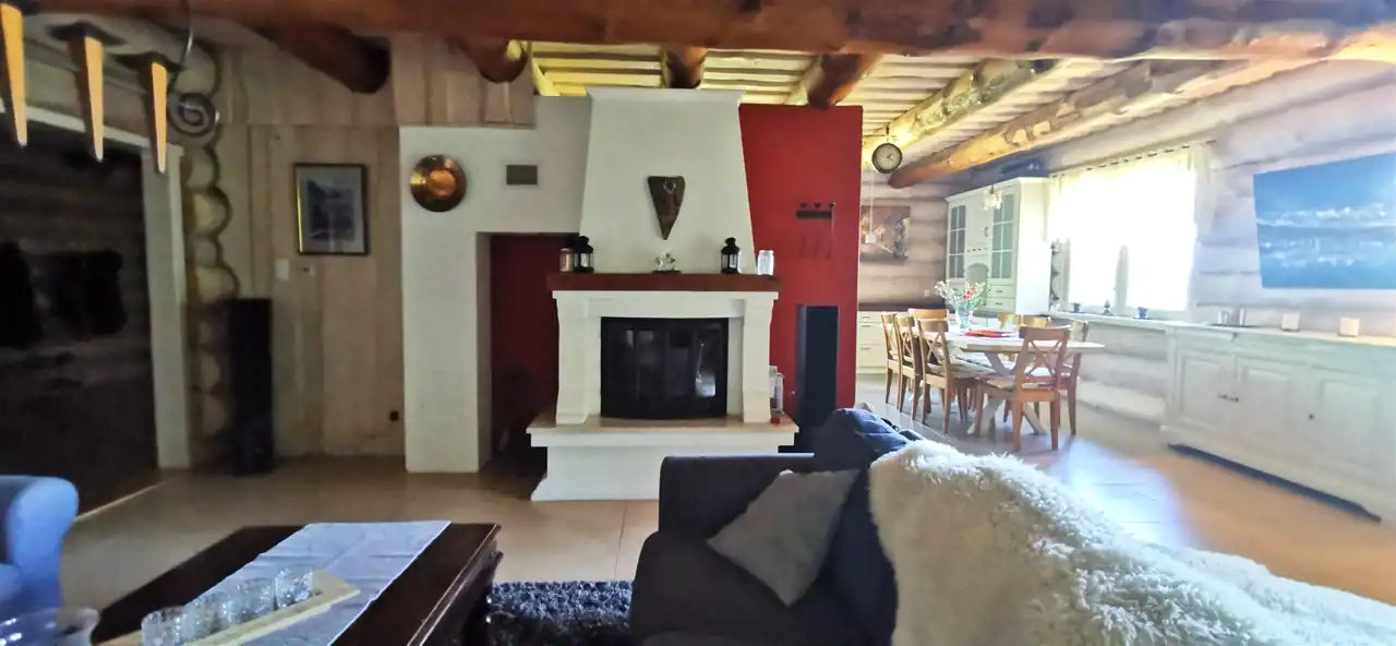 przestronny salon z kominkiem,