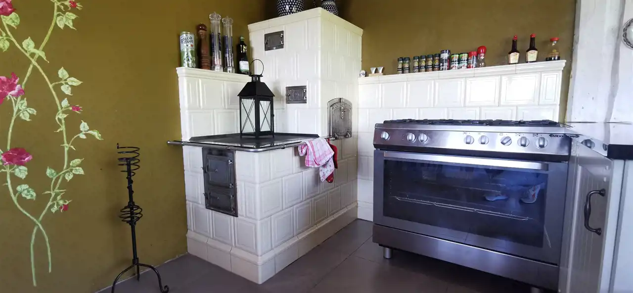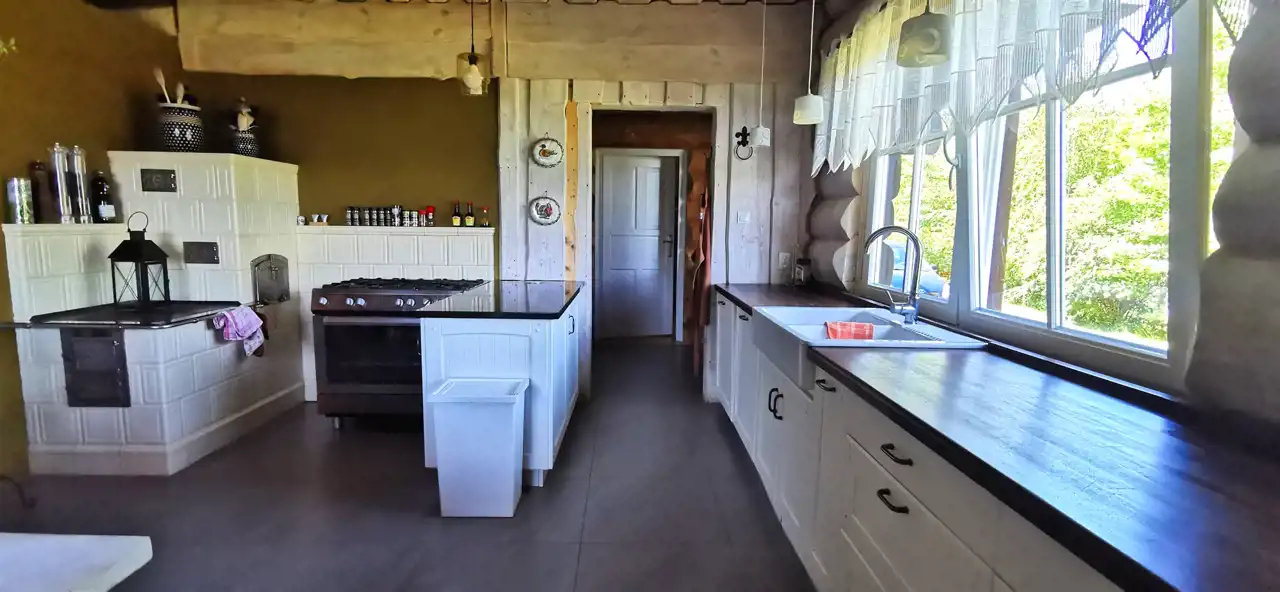 kuchnia z unikatową kuchnią kaflową,