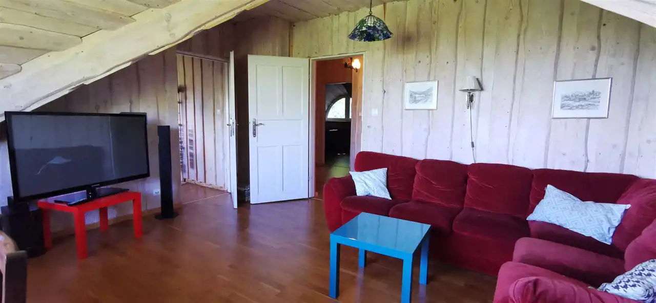 dodatkowa część mieszkalna ok. 70 m² (salon z aneksem, 2 sypialnie, łazienka, przedpokój).