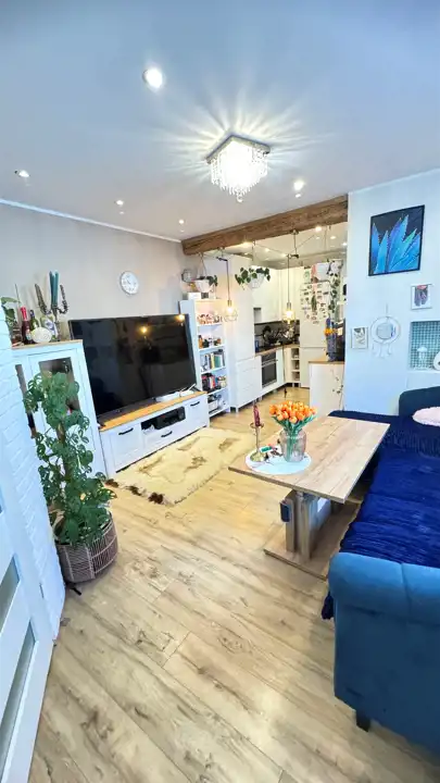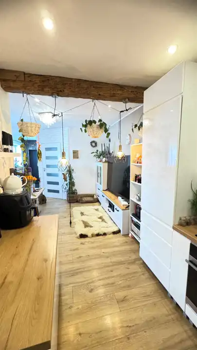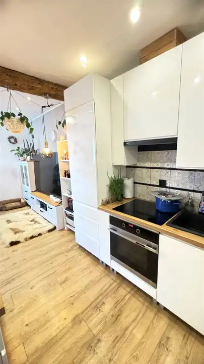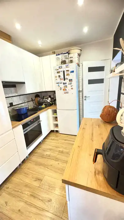Okna PCV, na podłogach panele i terakota. W cenie pozostają meble w zabudowie kuchennej wraz ze sprzętem AGD. Pozostałe meble do uzgodnienia.
