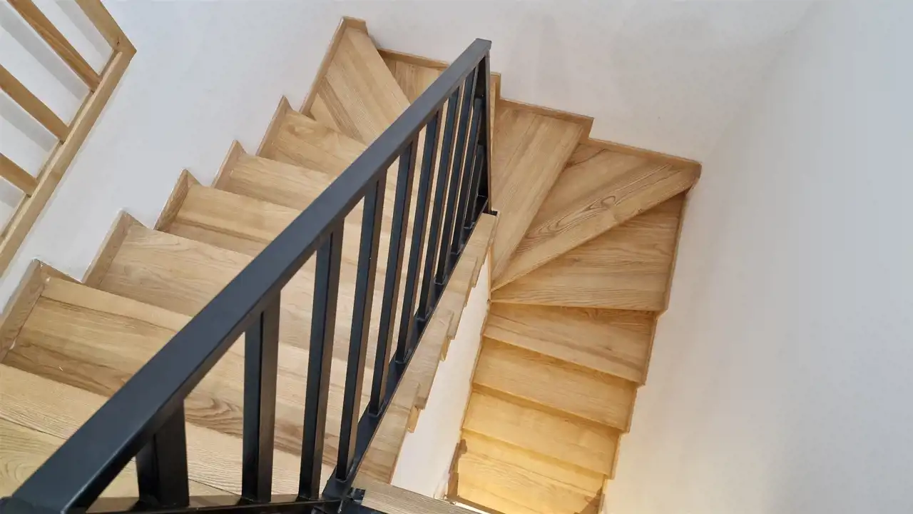 drewniane schody z podświetlanymi stopniami,