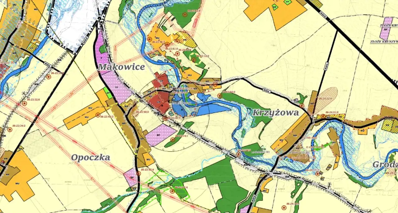 Aktualny miejscowy plan zagospodarowania przestrzennego z 2014 roku . Teren w większości przeznaczony R – tereny rolnicze , aktualnie uprawiane i w dobrej kulturze rolnej. Część działki około 1000 m2 położona na planie oznaczona M – tereny zabudowy zagrodowej z wyłączeniem gospodarstw hodowlanych powyżej 40DJP.