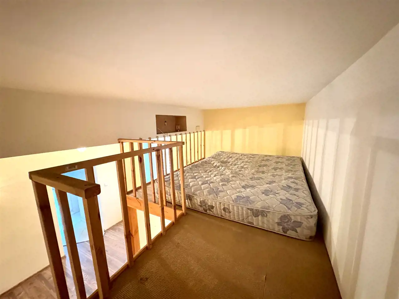 W pokoju wykonana jest antresola sypialniana a pod nią wykonano niewielkie pomieszczenie użytkowe.