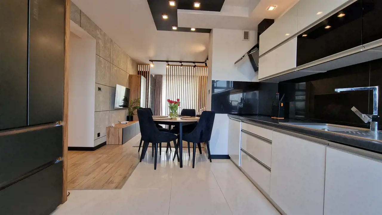 Mieszkanie zachwyca przemyślanym układem i spójną aranżacją, w której każdy element ma swoje miejsce. W jego skład wchodzą: