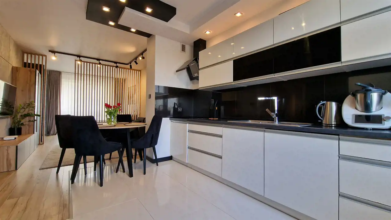 Mieszkanie zachwyca przemyślanym układem i spójną aranżacją, w której każdy element ma swoje miejsce. W jego skład wchodzą: