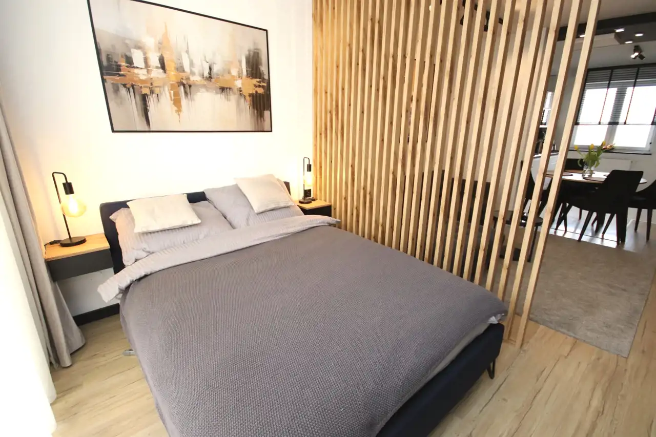 - salon z wyjściem na balkon (w części salonu wydzielona dodatkowa sypialnia),