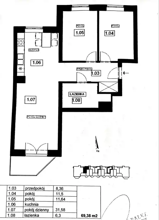 - Charakterystyka mieszkania 69.38 m2, 3 pokoje