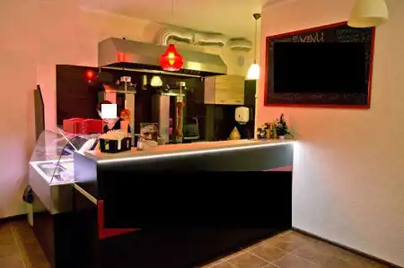 Stan- po remoncie- ładna witryna wystawowa, podłogi płytki, ściany gładzie plus motywy ozdobne, nowoczesne oświetlenie.